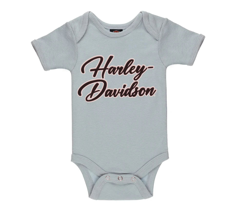 Our must have 2pack Ribbed Bodysuits features the classic My Grandpa Rides A Harley® Graphic with H-D® Bar & Shield screen printed at front on one, and script logo on the other