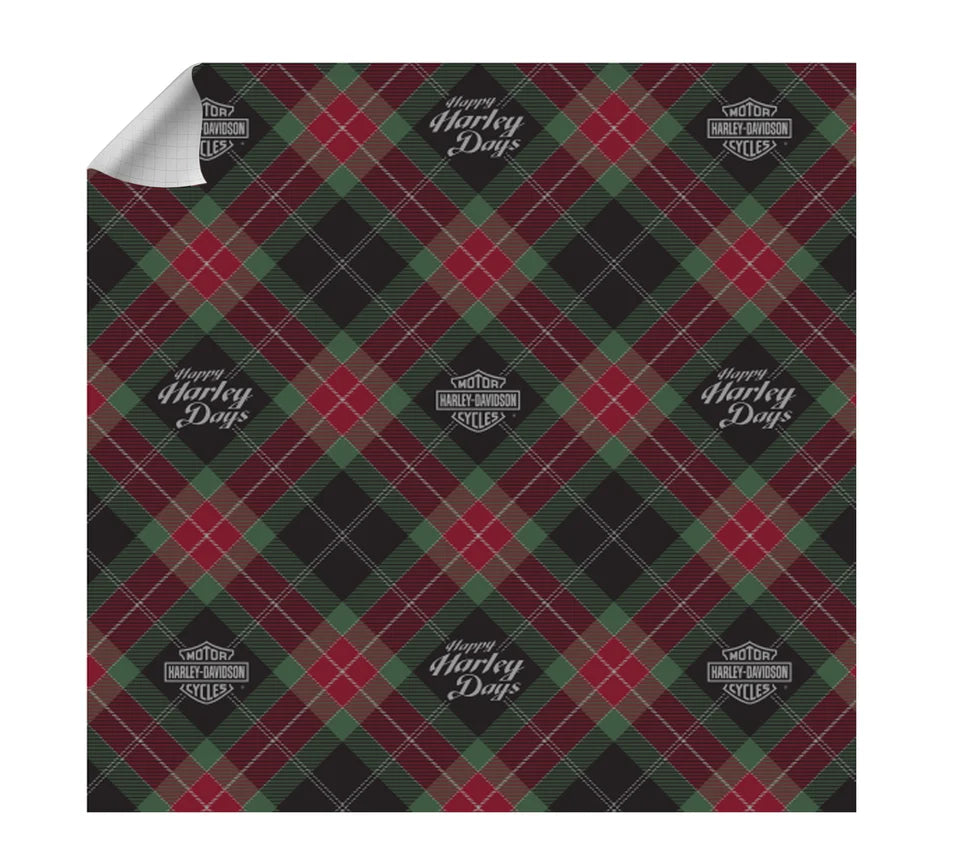 Holiday plaid graphic with repeat Happy Harley Days and B&S graphic