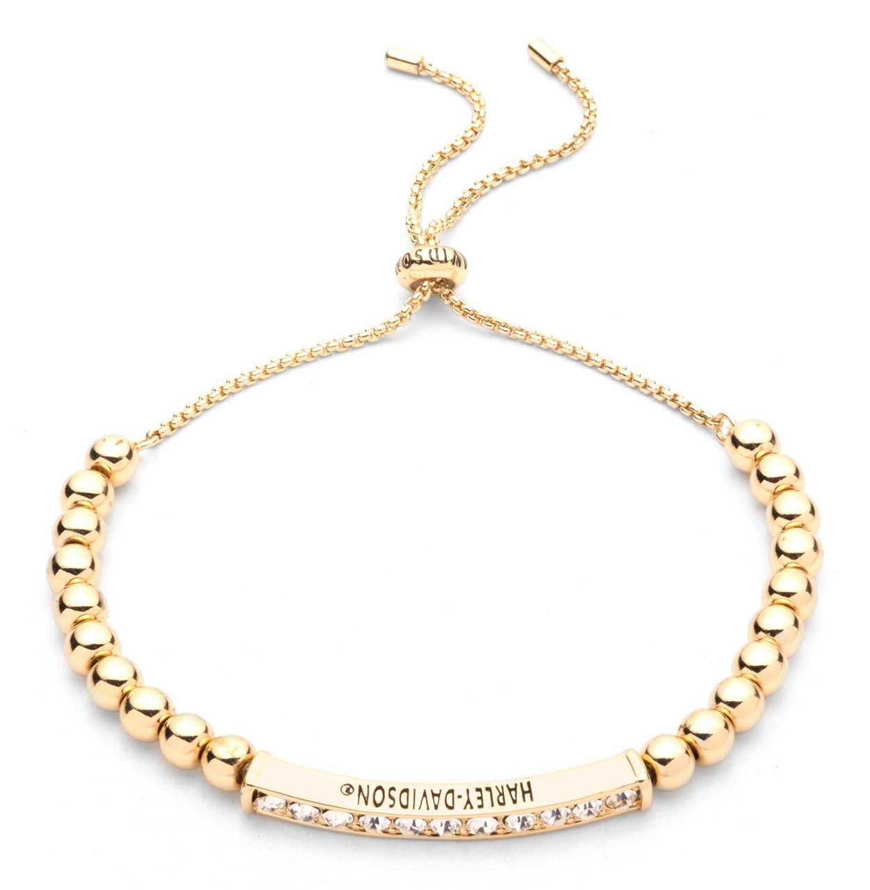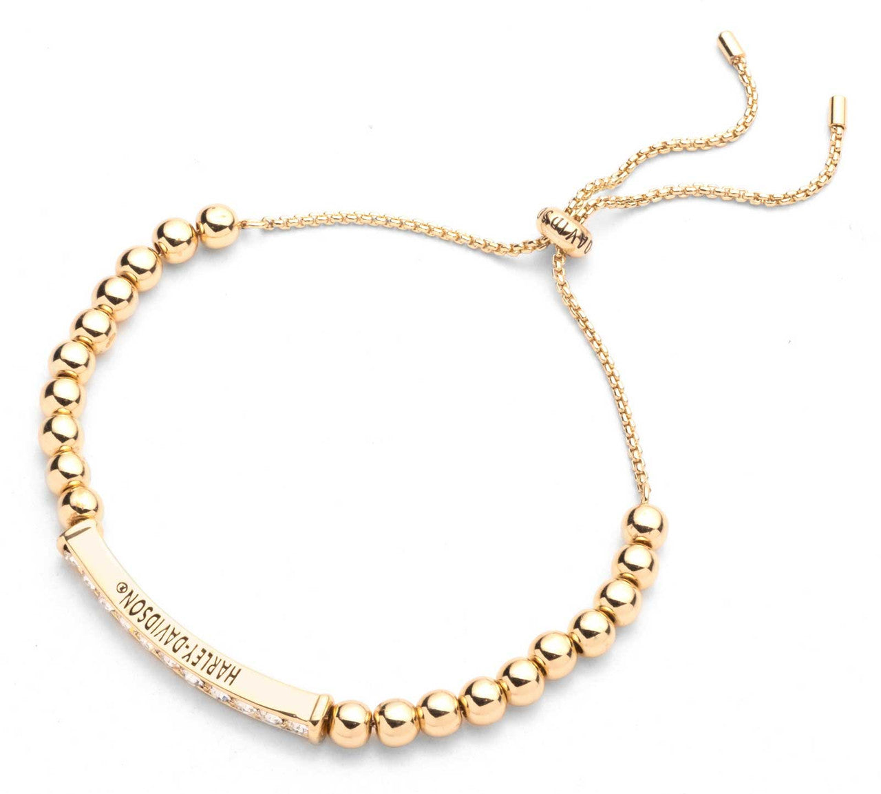 WOMEN'S 10" GOLD TONE BEAD ADJ H-D SCRIPT SLIDER BRACELET