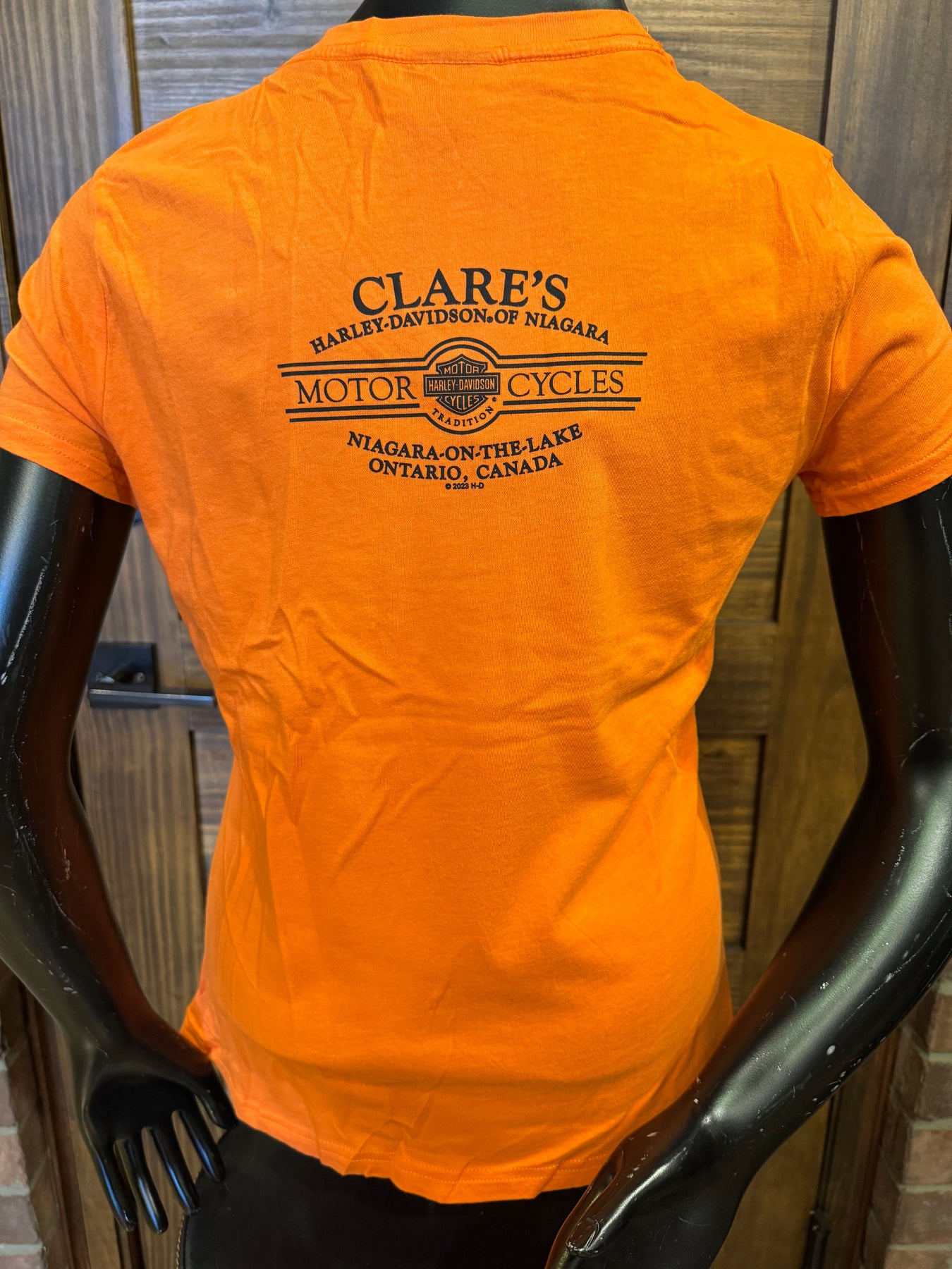 Women's dealer logo backprint t-shirt.