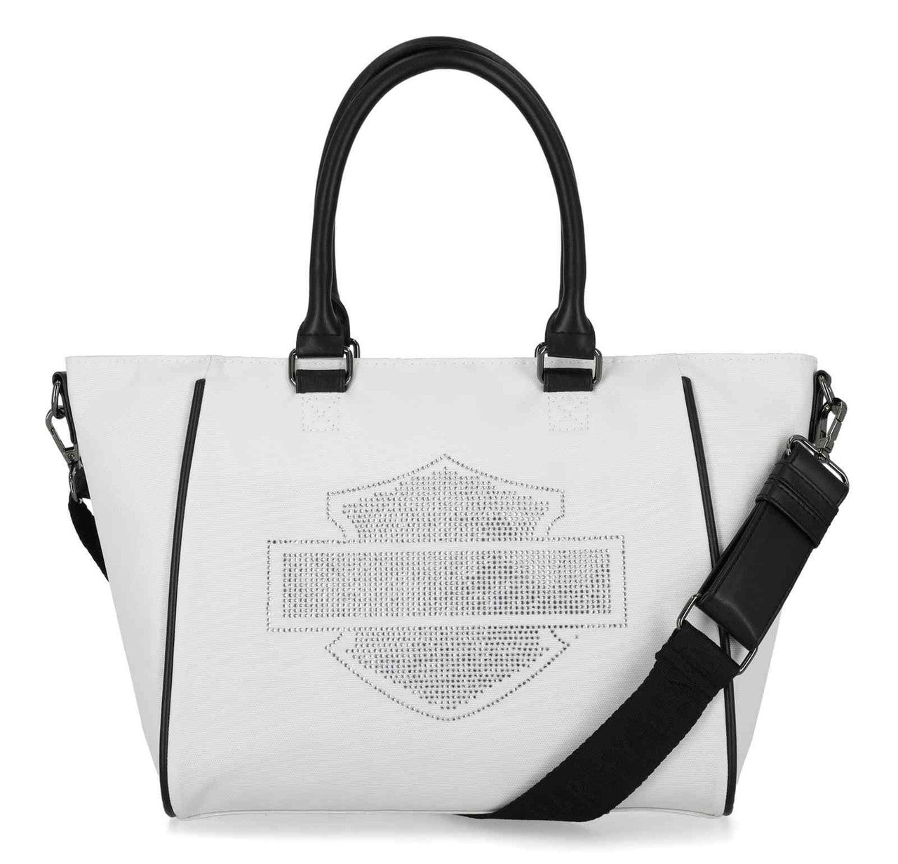 Open Bar & Shield Rhinestone Satchel Purse, White